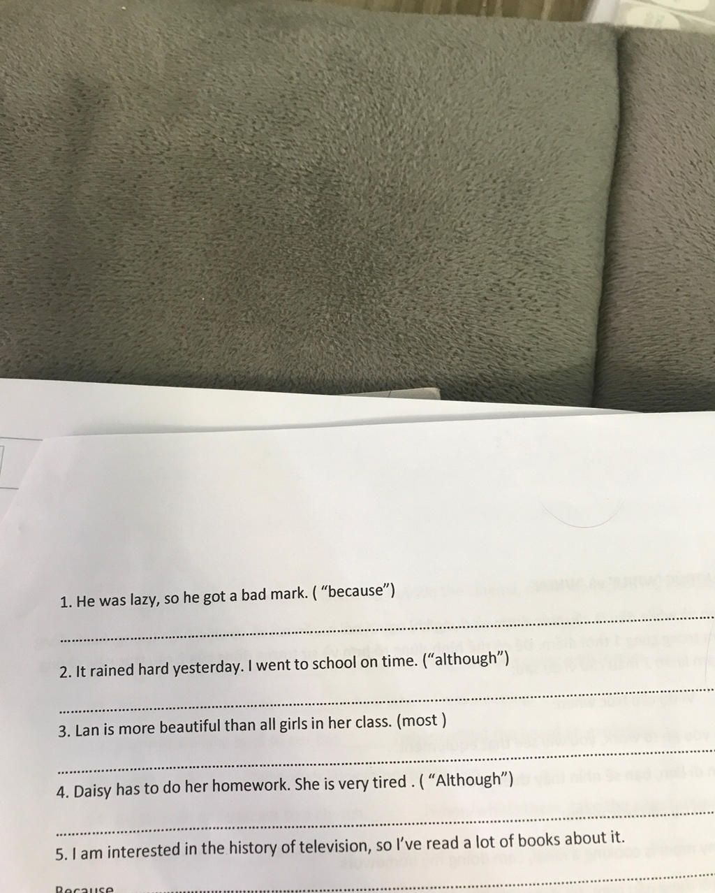 $\\$ `4.` Although Daisy is very tired, she has to do her homework.