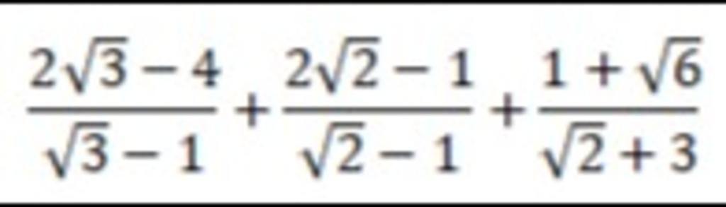 `(2sqrt3-4)/(sqrt3-1)+(2sqrt2-1)/(sqrt2-1)+(1+sqrt6)/(sqrt2+3)`