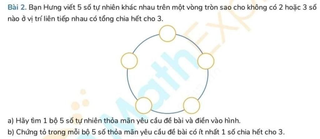 b) Giả sử cả 5 số đều không chia hết cho 3, khi đó các số này chia 3 dư 1 hoặc chia 3 dư 2.
