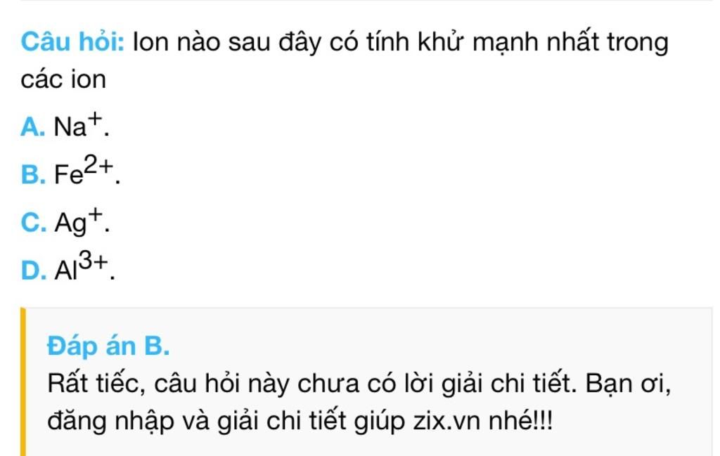 Các ion $Na^+, Ag^+, Al^{3+}$ là các ion bền, rất khó thể hiện tính khử.
