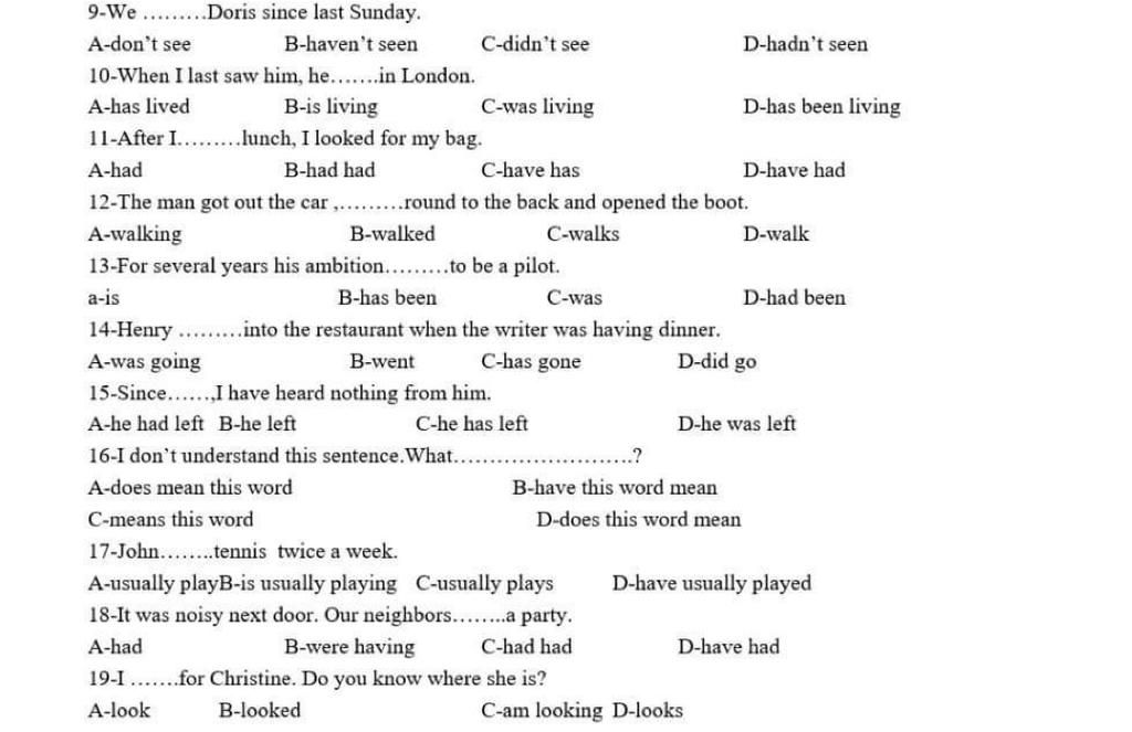 `-` since last Sunday → chia thì hiện tại hoàn thành