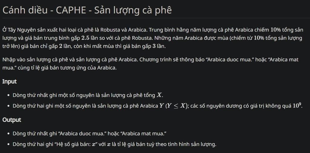 cout << "Arabica mat mua.\n"<<"He so gia ban: 3\n";
