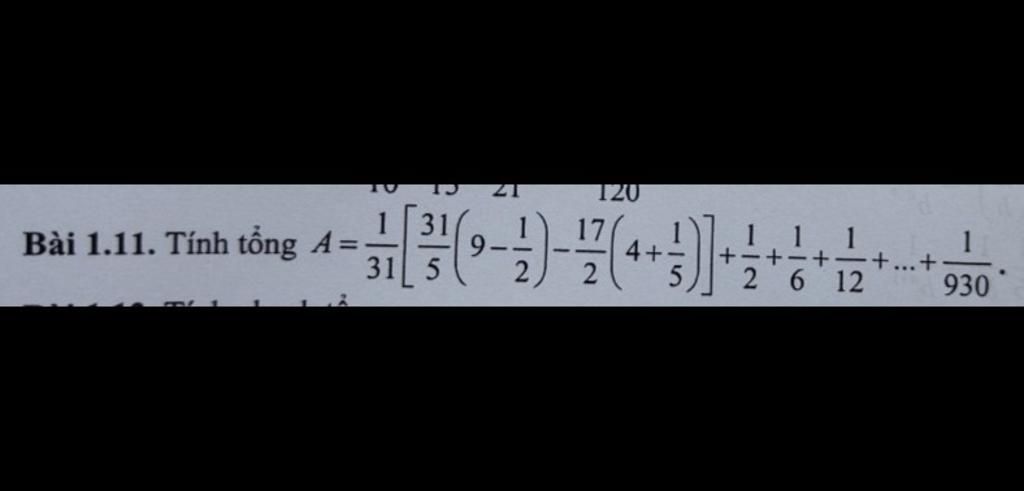 `A=1/31 . [31/5 .(9 - 1/2) - 17/2 .(4 + 1/5)] + 1/2 + 1/6 + 1/12 + ... + 1/930`