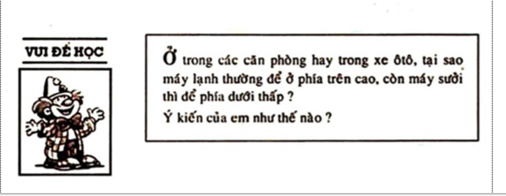 ⇒ Do đó người ta thường để máy lạnh ở trên cao và máy sưởi ở dưới thấp