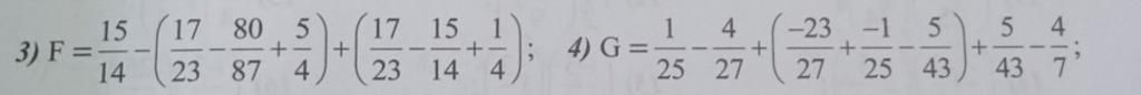 `3) F = 15/14 - (17/23 - 80/87+5/4) + (17/23 - 15/14 + 1/4)`