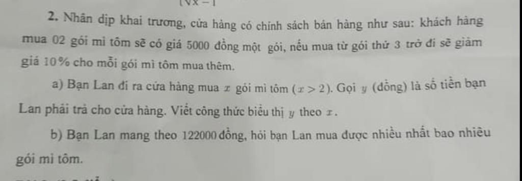 a. Khi mua $x$ gói mì tôm thì số tiền $y$ phải trả là: