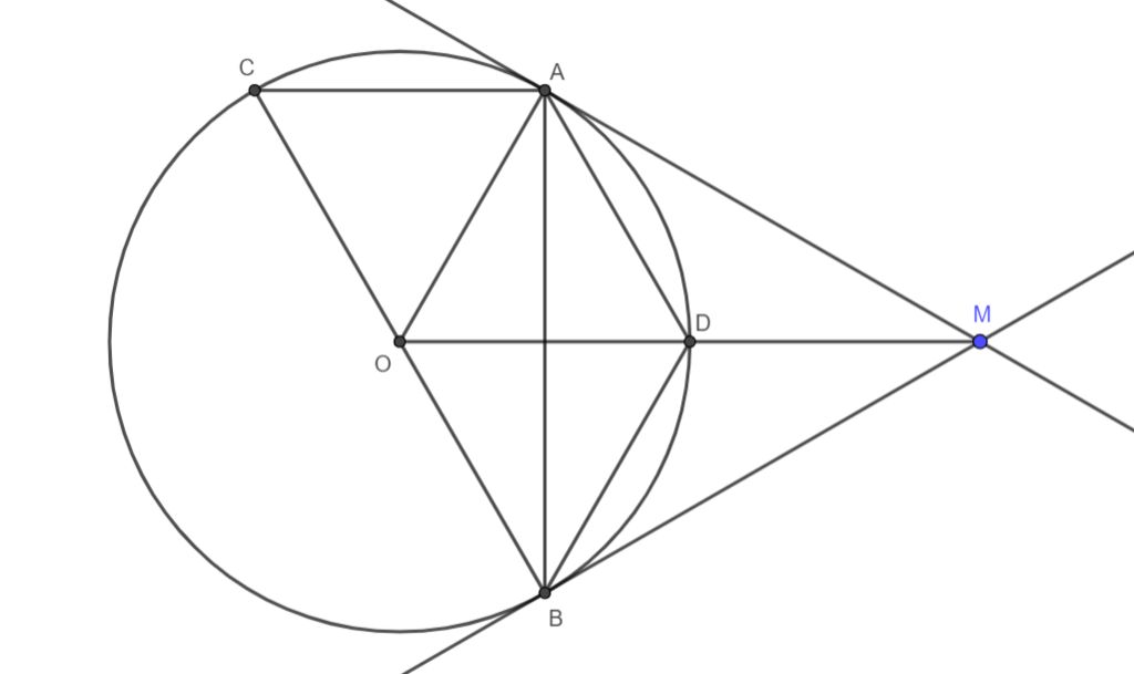 $b) MA, MB$ là hai tiếp tuyến cắt nhau