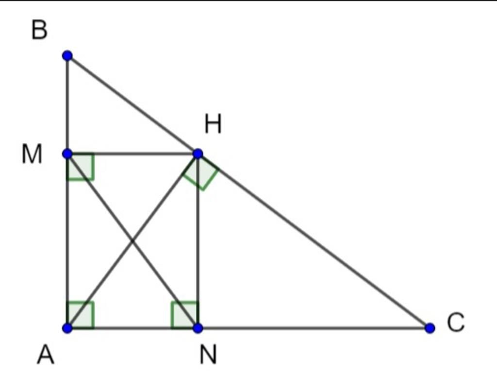 `\hat{MAN}=\hat{HMA}=\hat{HNA}=90^0 (AB⊥AC; HM⊥AB; HN⊥AC)`