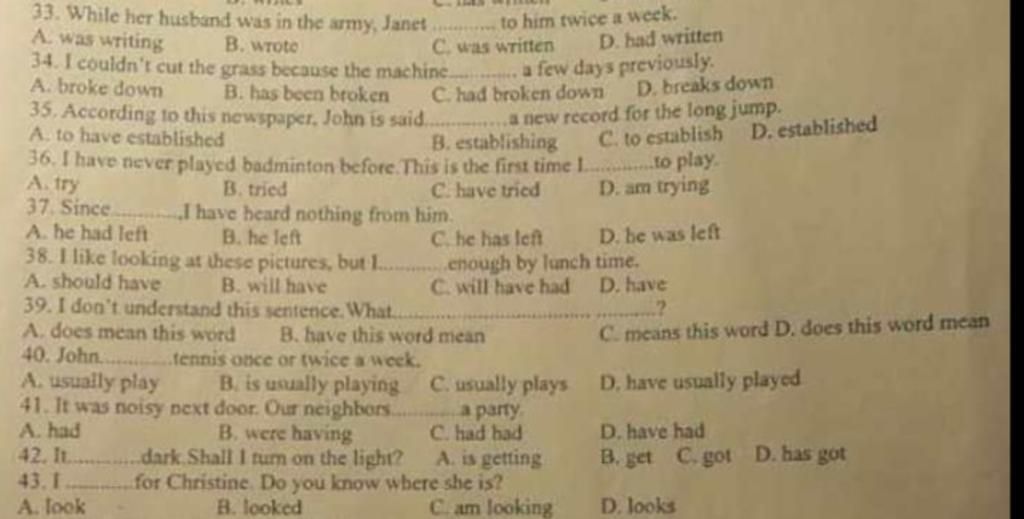 33. While her husband was in the army, Janet