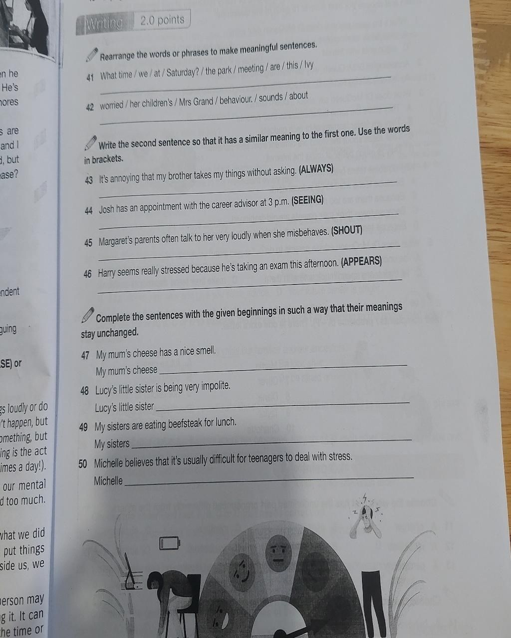 46. Harry appears really stressed because hes taking an exam this afternoon