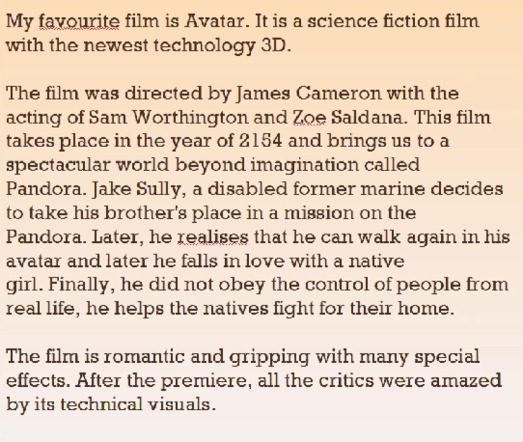 my favorite movie is avenger, this is also one of the best movies of the 20th century. It tells about superheroes all over the world, fighting with bad guys to protect the earth. Although the movie has many parts, I watched it all and it took a lot of my time to watch it. Now the movie has not shown anymore but I still want it to release a new part.