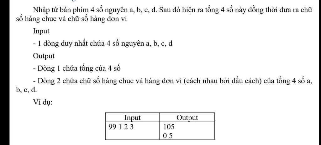 cout<<a<<'\n'<<a%100/10<<" "<<a%10;