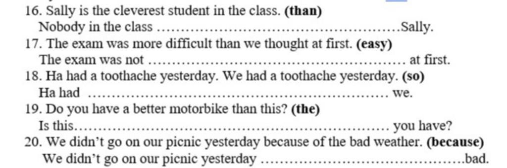 `20.` We didn't do on our picnic yesterday because the weather was bad.