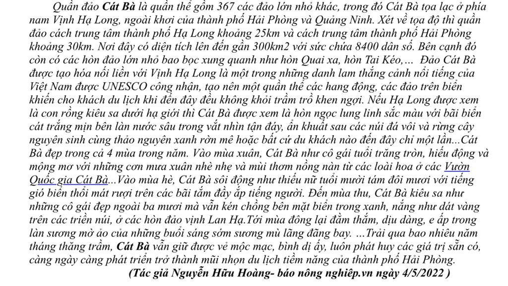 `-` Tuyên truyền cho mọi người nên có ý thức bảo vệ những vẻ đẹp danh lam thắng cảnh trên quê hương đất nước mình