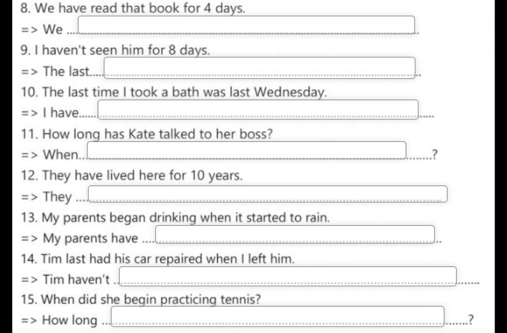 8. We have read that book for 4 days.