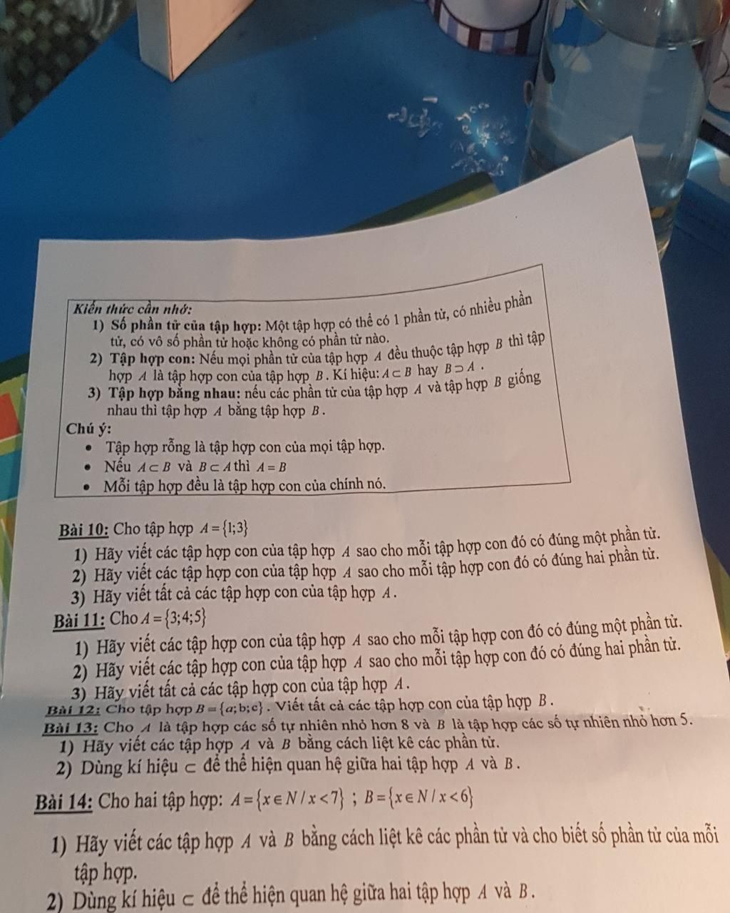 2) Tập hợp con: Nếu mọi phần tử của tập hợp A đều thuộc tập hợp B thì tập