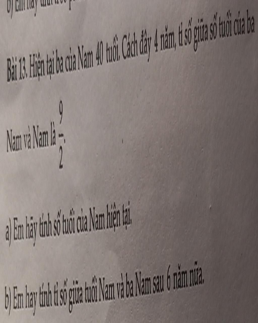 `\text{Đáp số: a) 12 tuổi; b) }9/23`