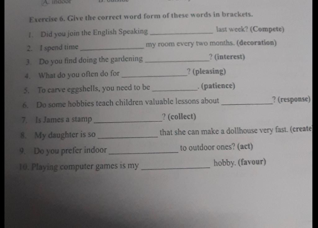 `9,` activities - indoor activity : hoạt động trong nhà