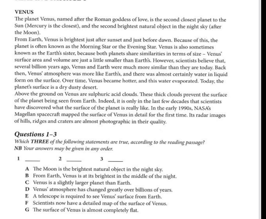 `3.` `F.` Scientists now have a detailed map of the surface of Venus.