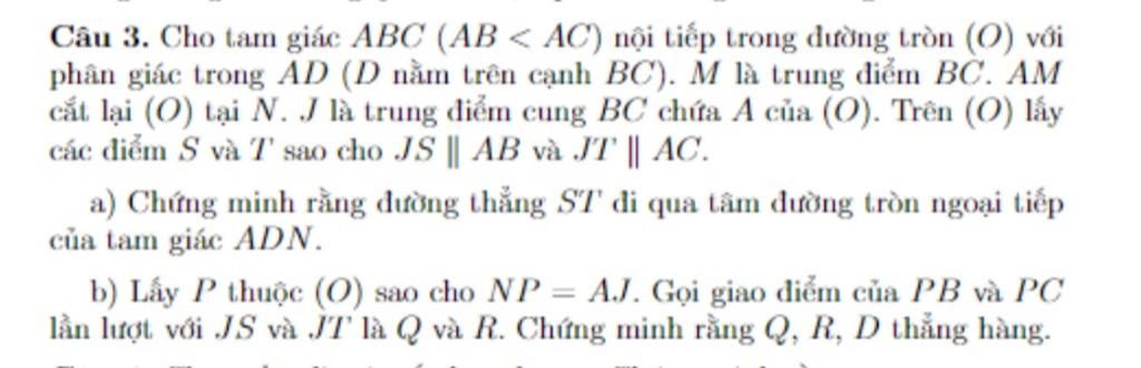 Câu 3. Cho tam giác ABC (AB < AC) nội tiếp trong đường tròn (O) với