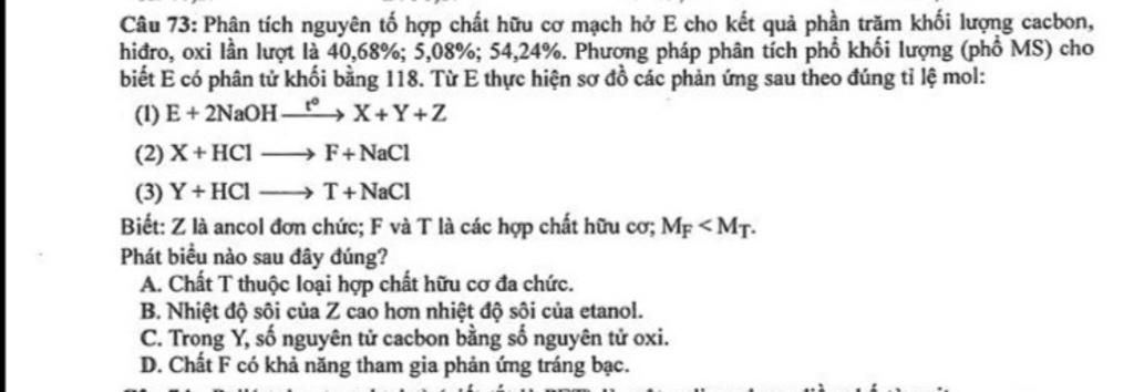 `-` Nhưng $F$ và $T$ là $2$ hợp chất khác nhau chứng tỏ có tạp chức.