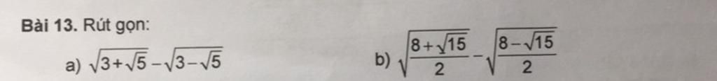 a) ` \sqrt{3+\sqrt{5}} -\sqrt{3-\sqrt{5}}`