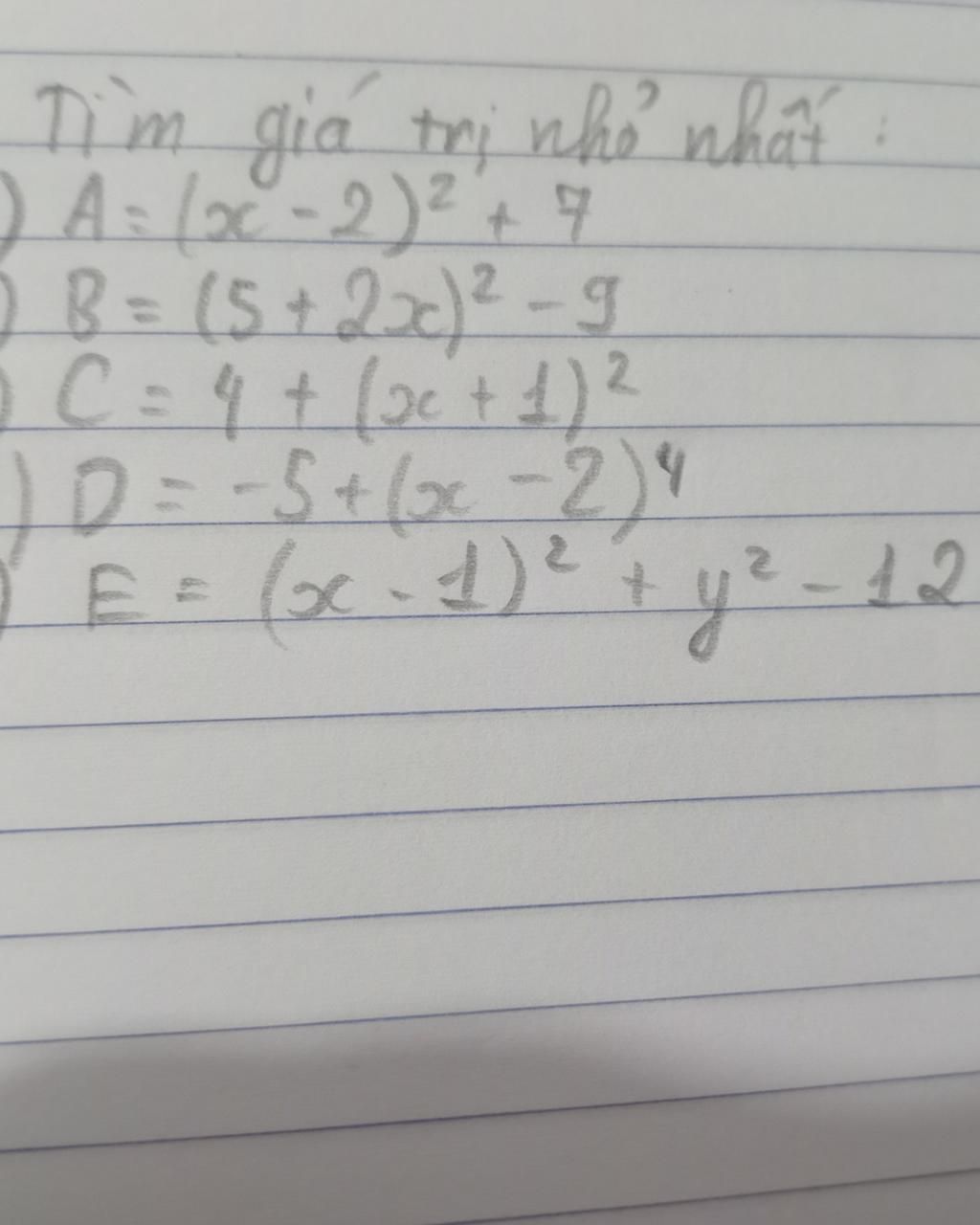 Vậy GTNN của `E` là `-12 <=> x = 1,y = 0`