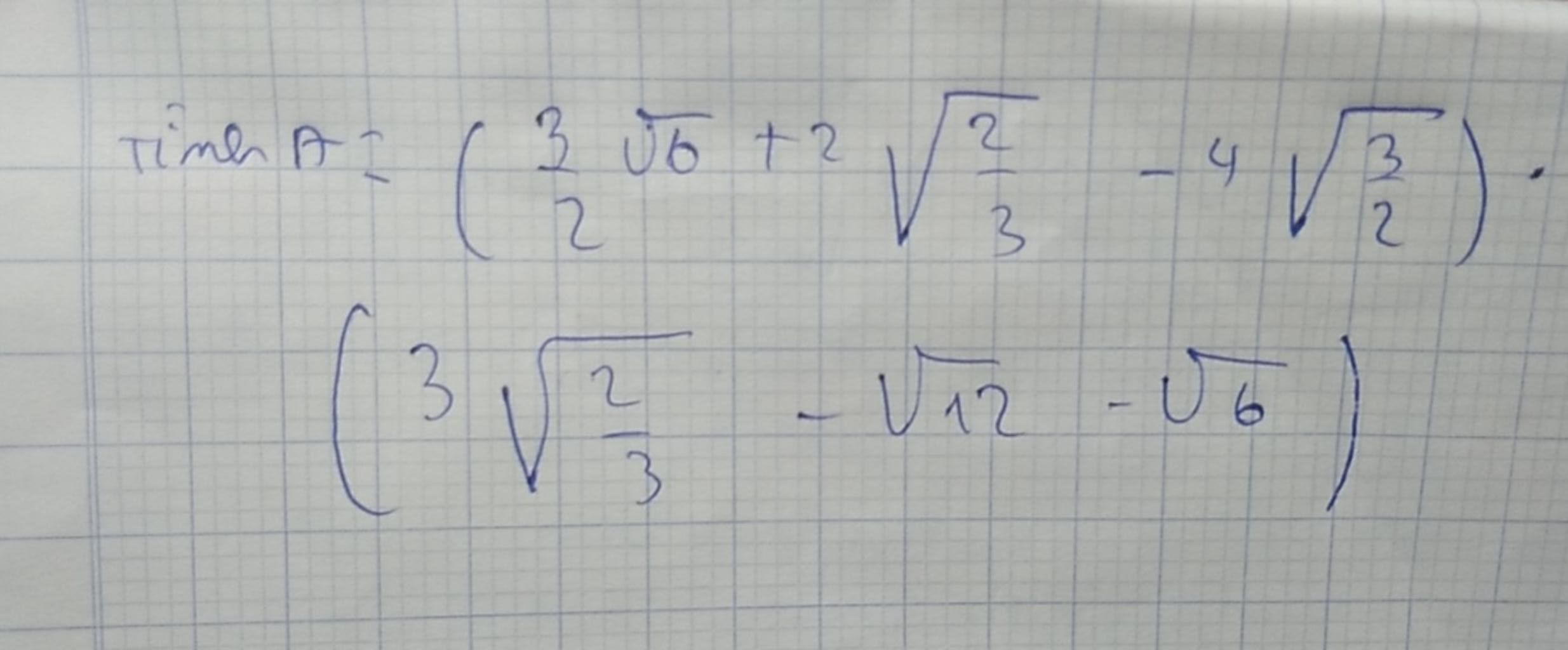 `( 3/2 \sqrt{6} + 2 \sqrt{2/3} - 4 \sqrt{3/2}).( 3 \sqrt{ 2/3} - \sqrt{12} - \sqrt{6} )`