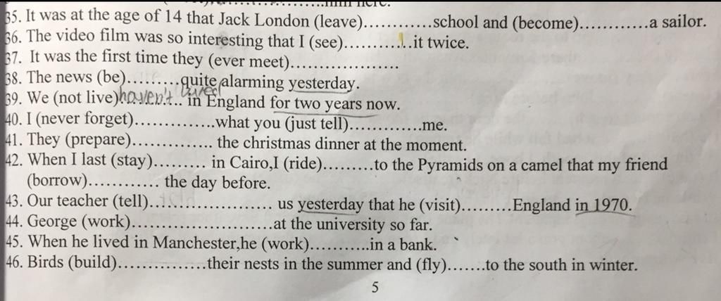 5. haven't lived (dựa vào dấu hiệu HTHT)