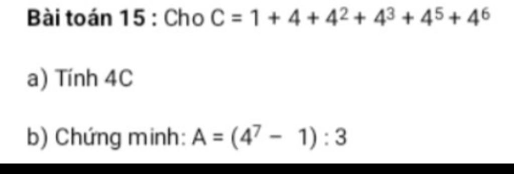 `a)` Ta có`: 4C = 4. (1+4+4^2+4^3+4^4+4^5+4^6)`
