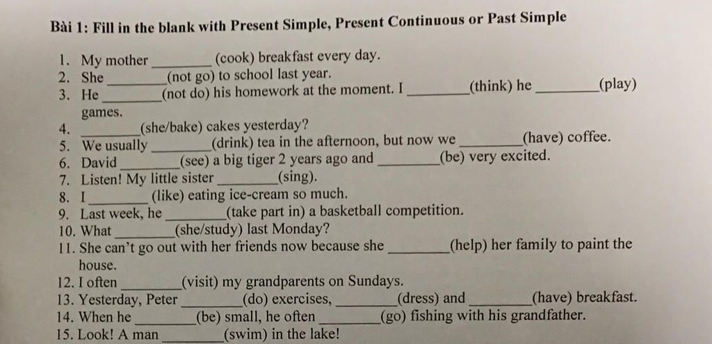 `-` `DHNB` : look! `->` HTTD : S + am / is / are + V-ing