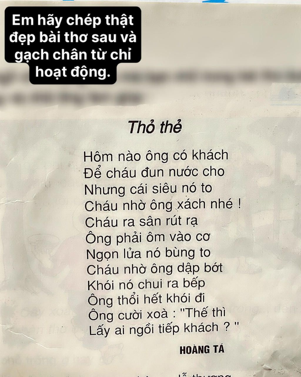 `=>` Những từ chỉ hoạt động: đun nước, xách, rút rạ, ôm, dập bớt, thổi hết khói, tiếp khách.