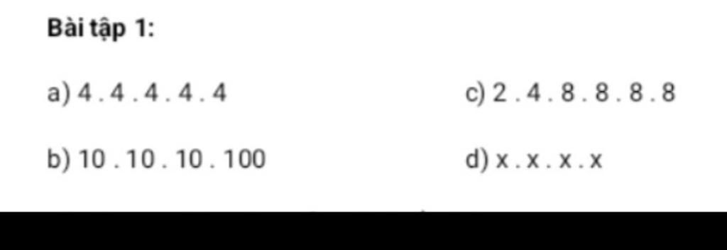 a) 4 . 4 . 4 . 4 . 4 = 4^5