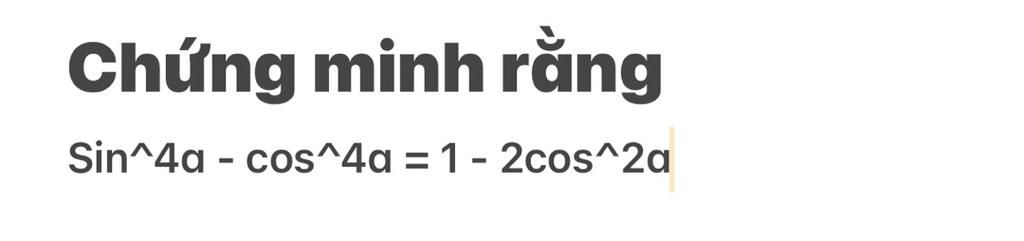 `[(sin^2(a))^2 - (cos^2(a))^2] = 1 - 2cos^2(a)`