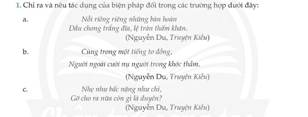 1. Chỉ ra và nêu tác dụng của biện pháp đối trong các trường hợp dưới đây: