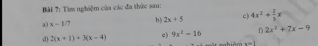$Vậy,$ `x=1/7` là nghiệm của đa thức trên
