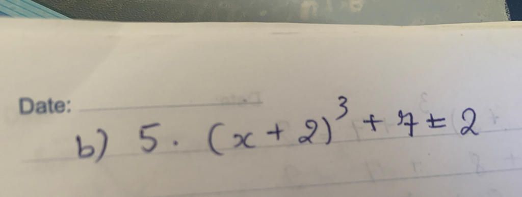 `b, 5.(x + 2)^3 + 7 = 2`