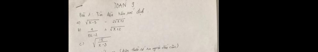 `a,` Để `\sqrt{x - 3} - 2\sqrt{x + 1}` có nghĩa thì