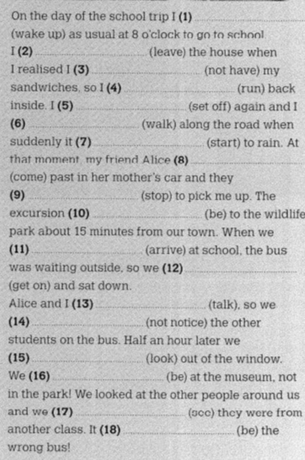 - Từ 1 đến 5 đang kể lại 1 chuỗi các sự việc xảy ra tuần tự nên chia thì quá khứ đơn