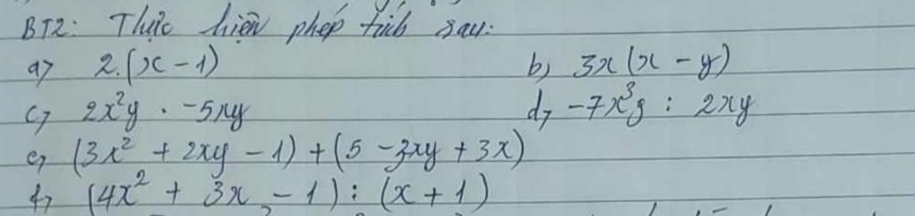 `b)` `3x.(x-y)=3x.x-3x.y=3x^2-3xy`