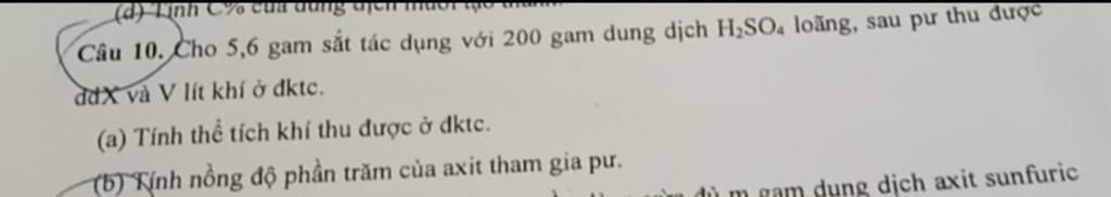 Theo phương trình: `n_{H_2SO_4} = n_{Fe} = 0,1 (mol)`