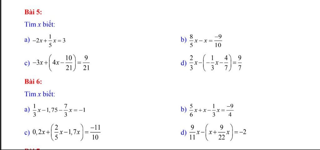 `b . ` `5/6x+x-1/3x=(-9)/4`