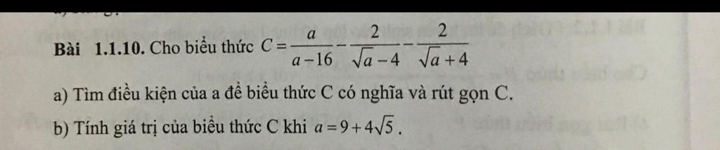a) Biểu thức $C$ có nghĩa khi $\begin{cases} a-16\neq0 \\\sqrt{a} - 4 \neq 0\\\sqrt{a} + 4 \neq 0\\a \geq0 \end{cases}$