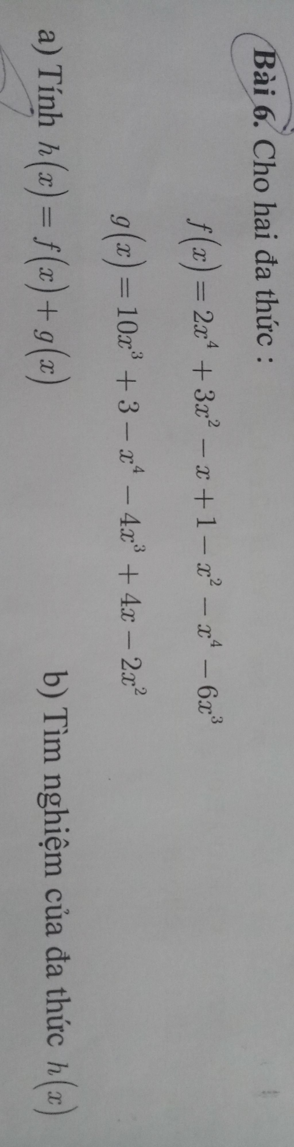 `f(x)=2x^4+3x^2-x+1-x^2-x^4-6x^3`