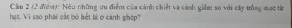 * Phải cắt bỏ hết lá ở cành ghép vì để giảm mất nước qua con đường thoát hơi nước, nhằm tập trung nước nuôi các tế bào ghép, nhất là các tế bào mô phân sinh được đảm bảo.