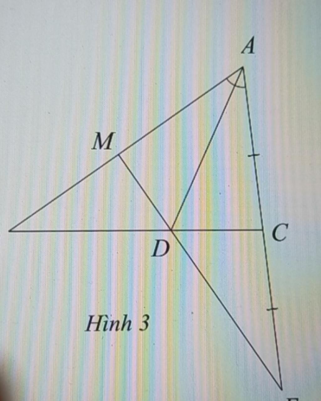 cho tam giác ABC, phân giác AD trên tia đối của CA lấy E sao cho CE= CA. ED cắt AB tại M(hình 3)
