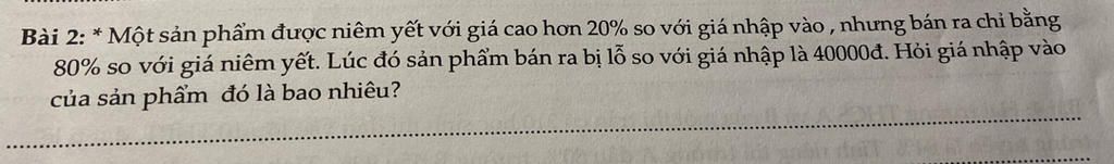 `0,96x = x - 40 000 ⇔ 0,04x = 40 000 ⇔ x = 1 000 000` ( đồng )