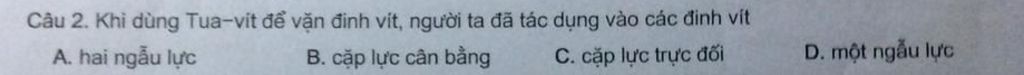 Khi dùng Tua-vít để vặn đinh vít, người ta đã tác dụng vào các đinh vít một ngẫu lực.