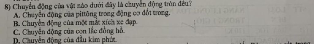 8) Chuyển động của vật nào dưới đây là chuyển động tròn đều?