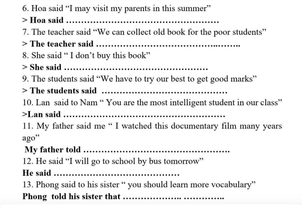 `10.` Lan said to Nam that he was the most intelligent student in their class.